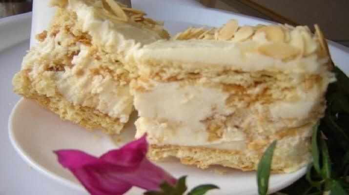 Сборка торта: Песочный корж намазать готовым кремом сверху безешный корж или безешки +крем +песочный корж. Бока торта украсить кремом кусочками безе, крошкой из песочных коржей и миндальной стружкой.
