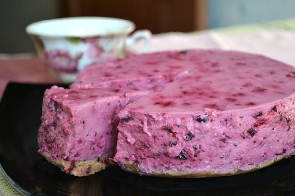 Добавляем в крем сливки с желатином и измельченную в блендере смородину. Еще раз взбиваем.