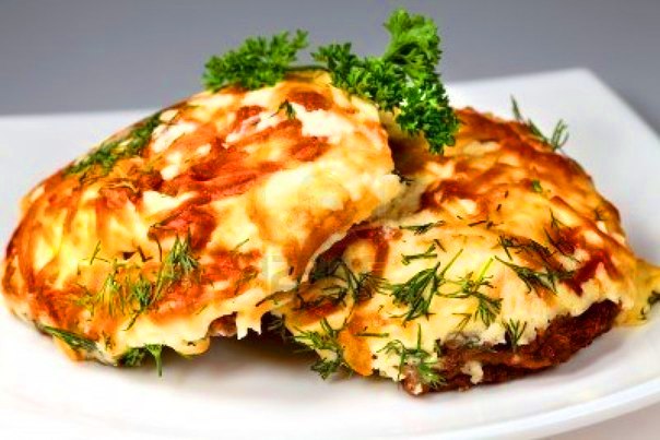 4 куска мяса (маринад: соль, специи и по 1 ст.л. майонеза, горчицы и кетчупа)
