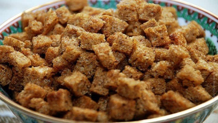 Сухарики подают к столу горячими, но и остывшие они так же вкусны.