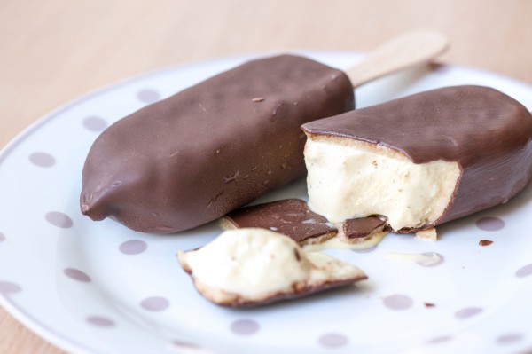 Формочки опустите на несколько секунд в кипяток и осторожно достаньте мороженое.