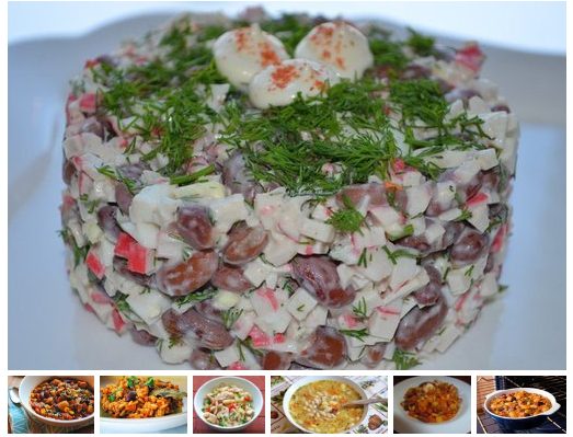 1. Очень быстрый салат с фасолью и крабовыми палочками