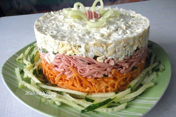 Выкладываем салат слоями, промазывая каждый слой майонезом: