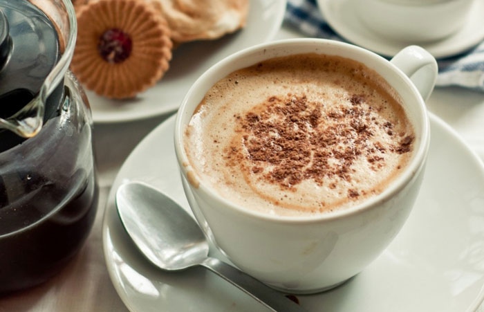 Наливаем молоко в металлическую емкость, ставим на плиту, нагреваем почти до кипения. Уменьшаем огонь на минимум и, оставляем молоко на огне, погружаем в него миксер и взбиваем пару минут до пенки.