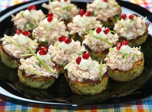 Выкладываем в корзинки сверху начинку.