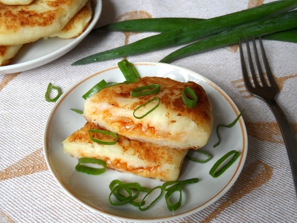Делаем из пюре небольшие блинчики, кладем в середину начинку из сыра и формируем зразы.
