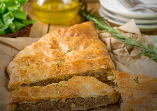 Накрываем начинку второй частью теста, защипываем хорошо края и накалываем в нескольких местах деревянной шпажкой.