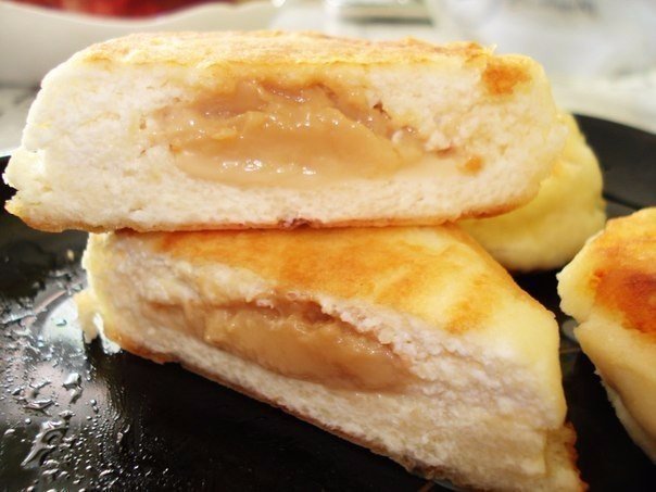 Делаем в творожном шарике углубление и кладем в него чайную ложку вареной сгущенки.