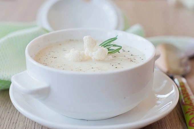 Подаем суп, украсив зеленью и маленькими соцветиями капусты.