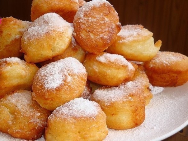 Выкладываем с помощью 2 чайных ложек маленькие пончики в большое количество разогретого масла в сковороде.