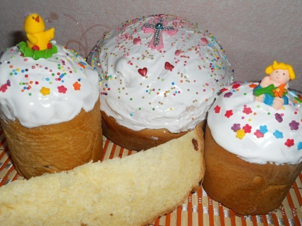 Выпекаем при 180 С в течение 30‐40 минут. Выкладываем готовые кулич на чистое полотенце на бок, через 5 минут переворачиваем на другой бок. Накрываем полотенцем.