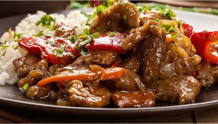 Свинина с луком и болгарским перцем – великолепное вкусное и аппетитное блюдо, которое можно приготовить и подать вместе с рисом на обед.