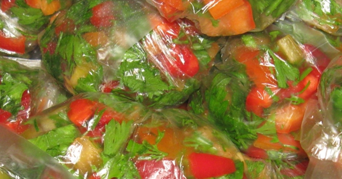 Раскладываем получившуюся смесь по пакетам, придавливаем, чтобы вышел воздух, завязываем или застегиваем и убираем в морозилку.