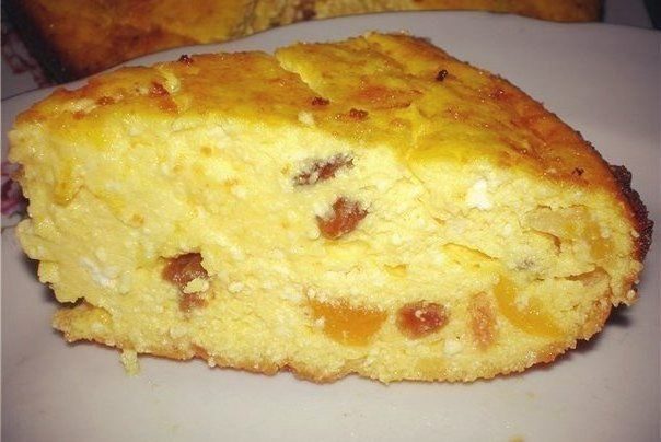 Затем добавляем изюм, кусочки кураги и снова перемешиваем.